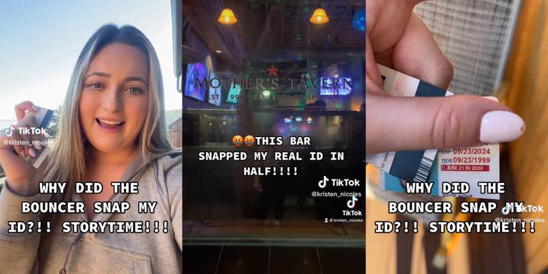 A woman went viral on TikTok after claiming a bouncer snapped her ID in half without explanation.