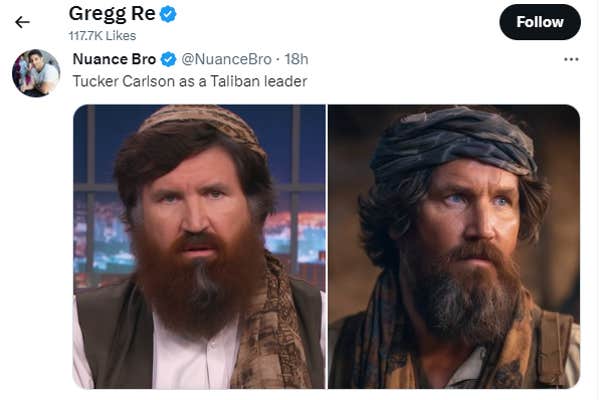 This weekend, he liked AI-created photos of Carlson as a Taliban leader.
