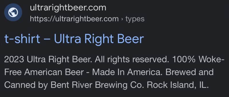 Seth Weathers decided to solve their woke beer woes by selling a brew that doesn't stand for LGBTQ equality in the slightest: Ultra Right 100% woke-free American beer. Weathers, who previously sold "Let's Go Brandon" wrapping paper at Christmas, just needed a company to brew it. Given his asking price of $19.99 plus shipping for a six-pack, this should've been an easy task. (A six-pack of Bud Light costs roughly $8-$10 at most retail locations in the United States.)