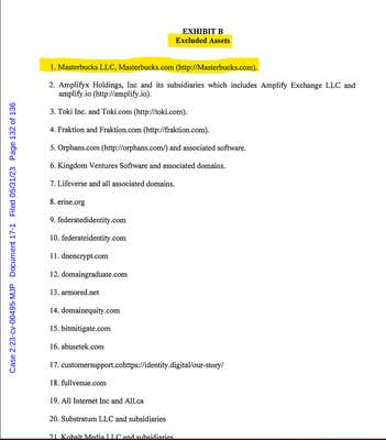 Court records show that under the terms of the asset purchase agreement, which Monster, Royce, and the buyer signed on May 30, Epik sold a slew of assets to a new company also called Epik, with the exception of 21 assets. Masterbucks is first on the list of assets excluded from the sale.