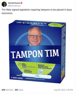 The post Why are Trump fans photoshopping Tim Walz’s face onto tampons? appeared first on The Daily Dot.
